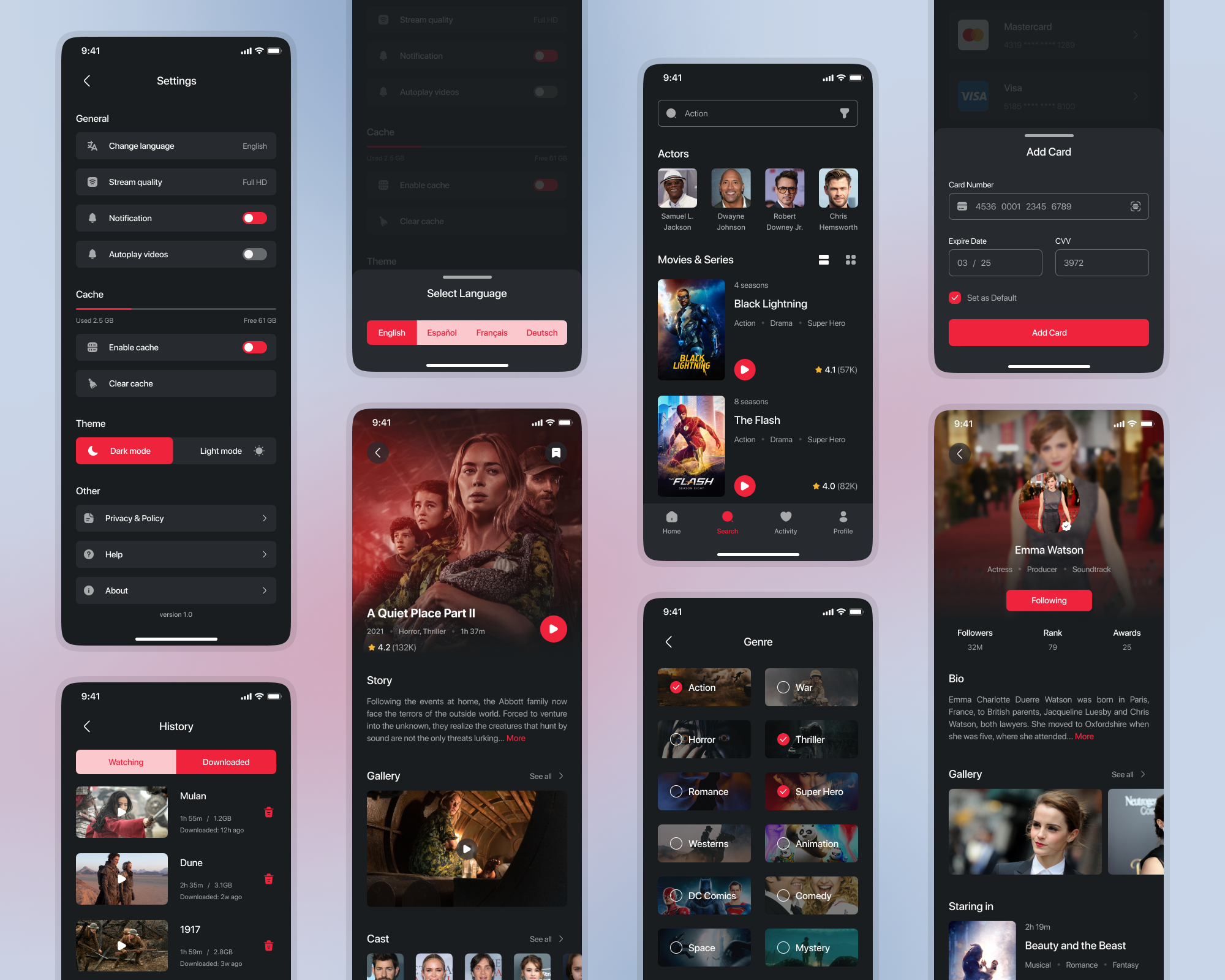 پروژه ی Movia ، یک پروژه ی کامل و آماده به کد می باشد و پس از تایید تیم review وب سایت جهانی Ui8.net ، این رابط کاربری را در وب سایت Ui8.net برای فروش گذاشتم.